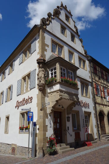 Die St. Elisabeth-Apotheke ist in einem Renaissance-Bürgerhaus mit Erker aus dem 16. Jh. untergebracht.  Es war das Pfründnerhaus des Deutschordens-Spitals.