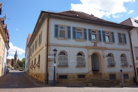 Das 1829 errichtete Gebäude diente von 1860 bis 1979 als Rathaus. Das Stadtwappen an der Fassade kennzeichnet es als öffentliches Gebäude. Dieses wurde im Jahre 1538 vom Deutschmeister und Administrator des Hochmeisteramts in Preußen Walther von Cronberg verliehen. Im Geviert: das Ordenskreuz, das Cronberger Wappen mit den Eisenhütlein, die goldene Kirchenspange der Horneck-Familie sowie ein blaues Schrägband mit einem G, die den Neckar und Gundelsheim symbolisieren.