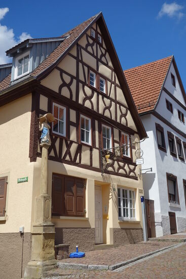 Fachwerkhaus mit Datierung 1639. Ehemals Bäckerei und Weinstube. Heute befindet sich hier der Sitz des Siebenbürgen-Instituts an der Universität Heidelberg, der zentralen wissenschaftlichen Dokumentations- und Forschungsstelle für die Geschichte und Kultur Siebenbürgens, einer  multikonfessionell  und multiethnisch