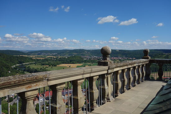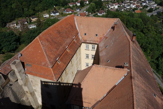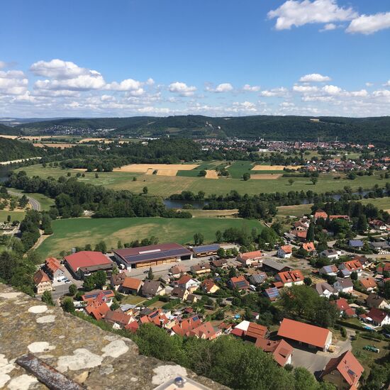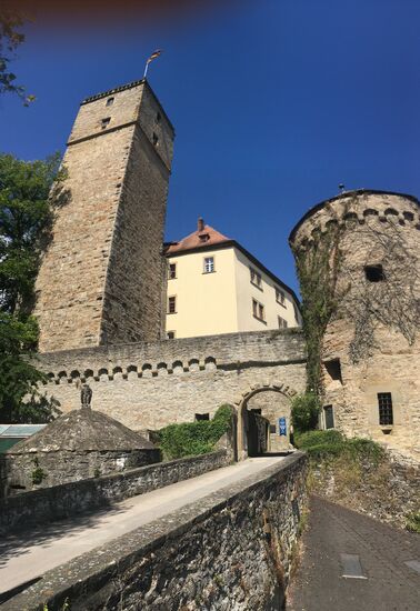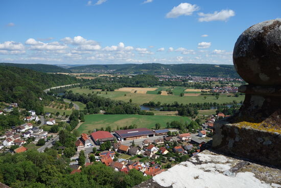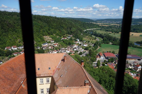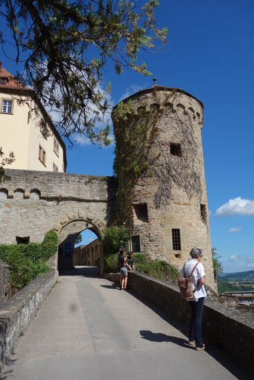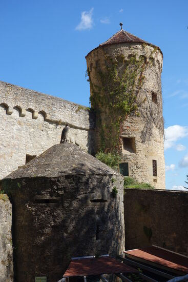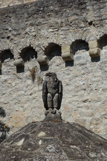 Genau gegenüber auf der anderen Neckarseite liegt die Burg Guttenberg - die Burg der Adler (Deutsche Greifenwarte) - Wir wollen zwar keiner Flug-Vorführung der riesigen Vögel beiwohnen, aber die Zwingeranlage und das Burgmuseum besuchen.