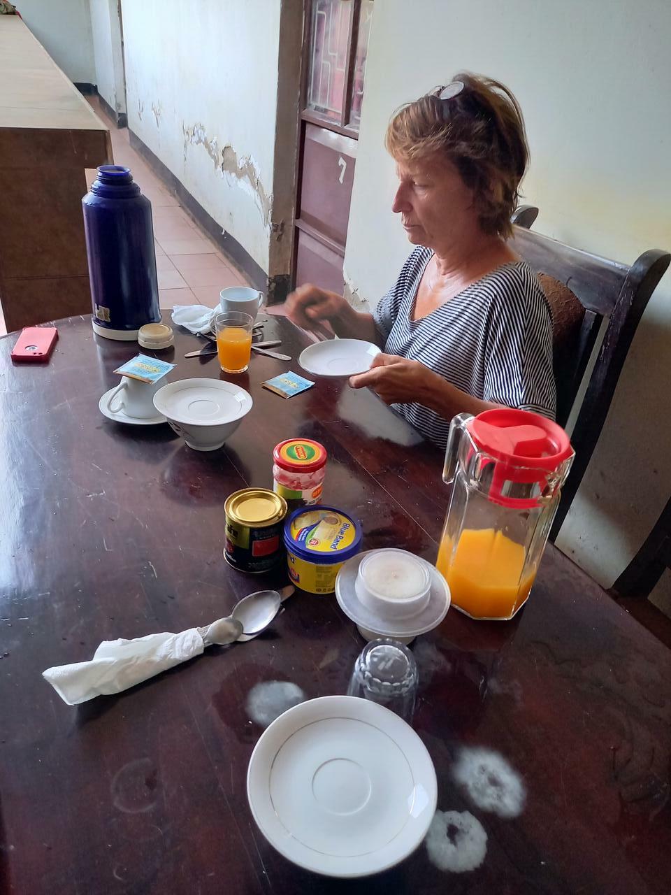 Unser Frühstück war wieder gut und so starten wir gut gestärkt zu den Schulprojekten. Doch vorher verabschiedet uns Joas noch persönlich.