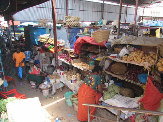 Zu Mittag kehren wir in einem typisch einheimischen Restaurant ein. Das Lokal liegt in einem Hinterhof, den man als Tourist normalerweise so nicht finden würde. Es gibt Chips Mayai. Das sind Pommes mit Ei überbacken. Dazu gibt es Sauerkraut und Avocado - sehr köstlich!