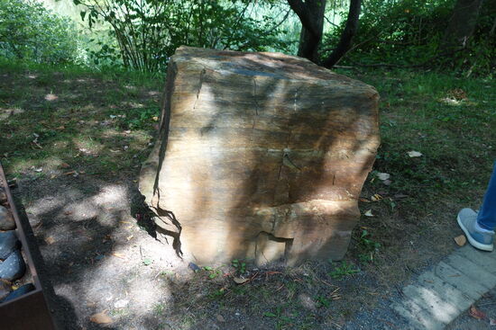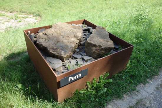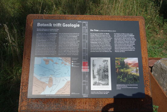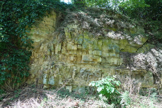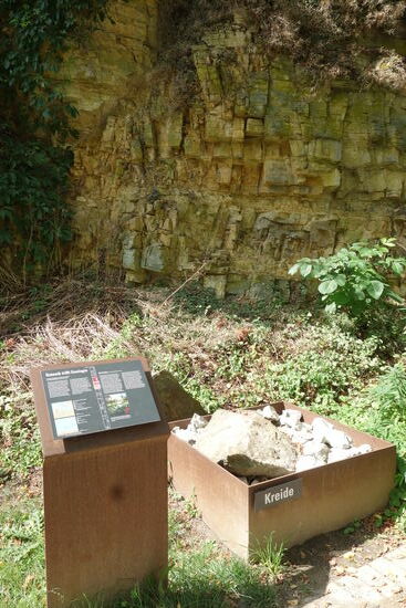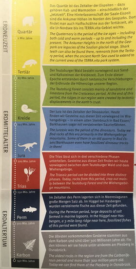 Das Osnabrücker Land vor etwa 235 Millionen Jahren: Osnabrück liegt in einer Klimazone, die ungefähr der heutigen Lage Floridas entspricht. In unserer Region erstreckt sich ein subtropisches Flachmeer. Es ist so heiß, dass ständig Meerwas¬ser verdunstet. Was bleibt zurück, wenn ein Meer austrocknet? Ähnlich wie bei einem Wassertropfen im Waschbecken fällt der enthaltene Kalk aus und hinterlässt einen Fleck. Nur ist der „Fleck" in diesem Falle sehr viel größer. Hier im alten Steinbruch am Westerberg kann ihn jeder sehen: Gelb, hart und meterdick - der Kalk aus der Trias-Zeit - in den folgenden Jahrmillionen zu Gestein gepresst. Durchzogen ist er von Muschelbänken: Durch die Verdunstung kommt es zeitweise zu einem extrem hohen Salzgehalt des Meerwassers - nur wenige Spezialisten kommen massenhaft vor. Muscheln besiedeln das Meer und sitzen dicht an dicht. Sterben sie, werden die Schalen als Schichten in die Kalkablagerungen eingebettet.