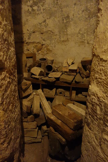 Die Gebeine der Toten wurden in diesem Keller beigesetzt, der sich hier in der Nordwestecke der Kirche vermutlich bis ins 12. bzw. 13. Jahrhundert zurückverfolgen lässt.