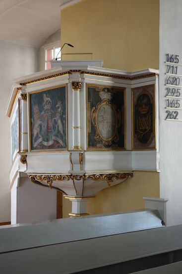 Der Steinfußboden mit blauschwarzen und weißgrauen Fliesen, die in Rautenform verlegt wurden, symbolisieren das bayrische Wappen Franz Wilhelm von Wartenbergs. Der Boden wurde 1997 rekonstruiert, nachdem der Rittersaal viele Jahrzehnte mit einem Holzfußboden ausgestattet gewesen war.