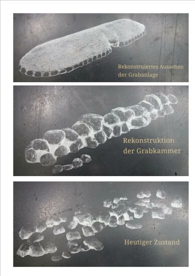 Im Jahr 2020 erbrachte eine Ausgrabung neue Erkenntnisse. Innerhalb der Grabkammer wurde der mit rötlichen Feldsteinen aus Granit gepflasterte Kammerboden etwa 0,5 m unter der heutigen Oberfläche nachgewiesen. Zwischen den mächtigen Tragsteinen fand sich sorgfältig gesetztes Mauerwerk aus Kalksteinen, die aus etwa 1 km Entfernung herantransportiert worden waren.