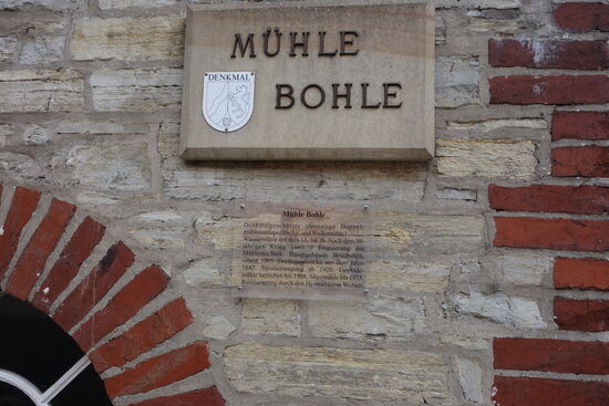 Eine Walke- und Bokemühle ist der eigentliche Ursprung der heutigen Doppel-Mühlenanlage Bohle. In aufwendigen handwerklichen Verfahren wurden die Fasern des Flachses gewonnen und zu Leinen gewebt. In einer „Buokemüolen" wurde die harte Schale des Hanf- bzw. Flachsstängels zerstoßen, so dass man leichter an die zur Leinenherstellung benötigten weichen Fasern gelangen konnte. Das Wasserrad treibt dabei über ein Vorgelege eine Nockenwelle an, deren Nocken vier Eichenstempel von ca. 2 bis 3 m Höhe anheben und dann auf den Stampf bock fallen lassen. Graf Mauritz von Tecklenburg forderte nach dem 30-jährigen Krieg wieder verstärkt den Flachsanbau. Die „Legge" in Tecklenburg überprüfte die Qualität des Leinens und vergab den begehrten Stempel. In der Grafschaft Tecklenburg mussten die Erzeugnisse der Weber zur Qualitätsübeiprüfung in der „Legge" vorgelegt werden. Das Wort „Legge" entstammt dem Niederdeutschen und bedeutet „legen". Nach der Güteprüfung durch den Leggemeister erhielt das Leinen ein Gütesiegel und entsprechend der Qualitätsbewertung der Weber seinen Lohn.