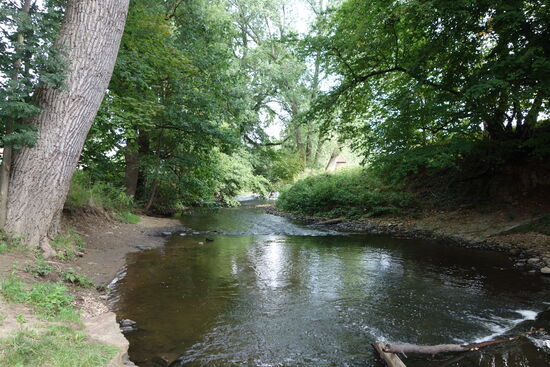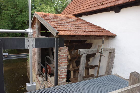 Um die Fischwanderung an diesem Standort und auch den zeitweiligen Betrieb der Mühle zu ermöglichen, wurde 2016 in den alten linksseitigen Mühlengang eine Fischaufstiegsanlage eingebaut. Diese besteht aus einem kiesgefüllten Stahltrog, der durch Querwände in 9 Kammern (Becken) unterteilt ist. Die seitlichen Aussparungen in den Querwänden lassen das Wasser durch die Becken strömen. Dies ermöglicht es den Fischen, den Höhenunterschied am Mühlenwehr zu überwinden. Sie können von Becken zu Becken schwimmen und müssen dabei jeweils nur eine geringe Höhe überwinden. In den kiesgefüllten Becken gibt es strömungsarme Zonen, die als Ruhezonen dienen und dadurch ,auch den Wirbellosen die stromaufwärts gerichtete Wanderung ermöglichen.