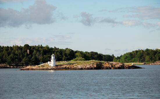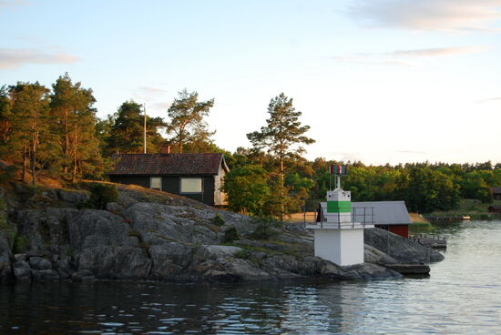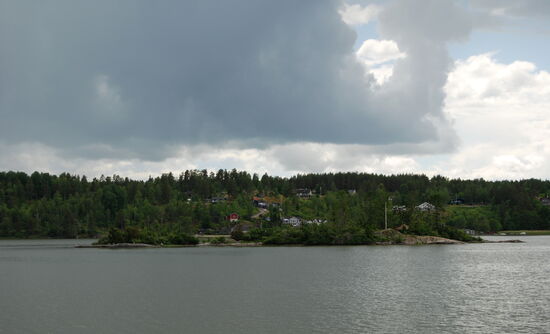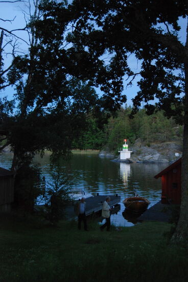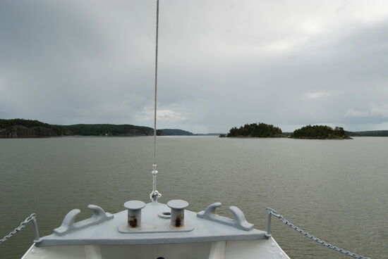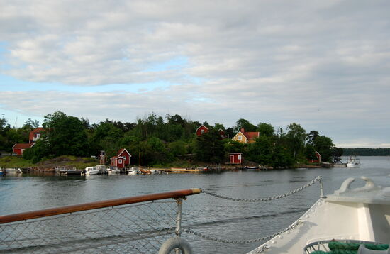 Weiter ging die Fahrt zwischen vielen kleinen Inseln hindurch auf die fast freie Ostsee. In der Ferne sahen wir die Industrieanlagen von Oxelösund. Wir bogen aber vorher ab und fuhren durch eine Passage der Schären mit alten Lotsenhäusern. Leider konnte Rainer nicht draußen bleiben und fotografieren, da es schon wieder Essen gab.