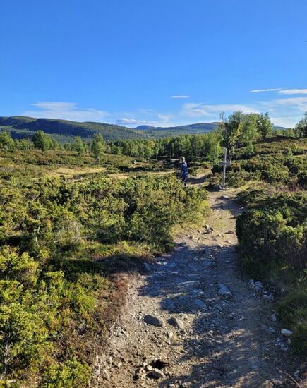 Strahlende Sonne, blauer Himnel. Wir ziehen los. Zuerst durch ein Birkenwäldchen und dann im freien Gelände. Unendliche Weiten. Das Gelände steigt stetig an. Immer wieder durchbrochen von kleineren, aber auch größeren Seen. Die restlichen paar Kilometer nach Storkvolvbua ziehen sich. Nach ca 6 Stunden sind wir dann endlich angekommen.