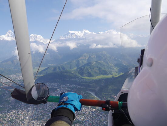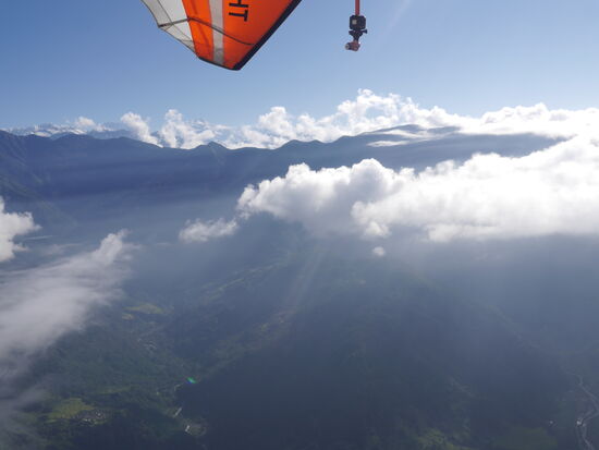 Auch das Hoch und Runter (Begeisterung) und die schönen Schleifen, die unsere Piloten geflogen sind, machten das Gefühl einmalig. Dazu die Aussicht auf die immer näherrückenden Berge und die Stadt unter uns war großartig. Wer mit dem Gedanken spielt es einmal zu versuchen: machen! Es lohnt!