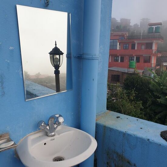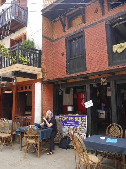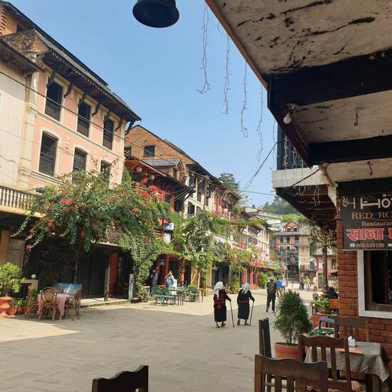 Das Hotel und die Hauptstraße trennt nur ein kleines Stück Weg, das für Ines aber immer wieder zur Herausforderung wird. Was in Sarangkot angefangen hat, könnte man jetzt „Treppenphobie extended“ nennen.
