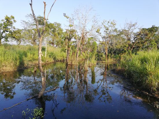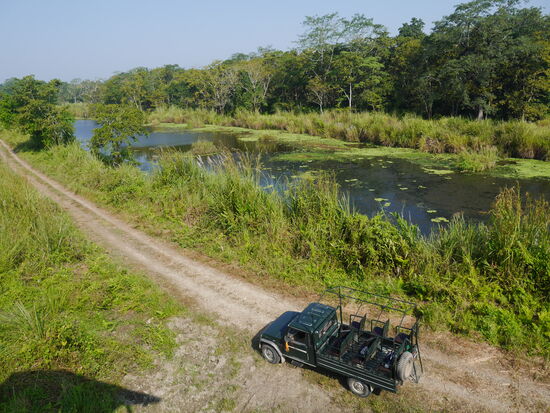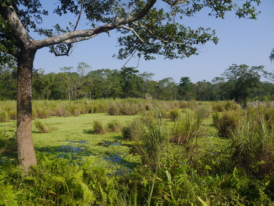 Der Nationalpark ist ein verkleinertes Abbild von Nepal. Es gibt 3 Vegetationsformen, die jeweils wie von einem anderen Erdteil zu stammen scheinen. Dazu gibt es im Park viele überflutete Flächen, Sümpfe und Seen. Hier sieht man oft viele Wildtiere, die zum Trinken kommen, heute allerdings nicht.