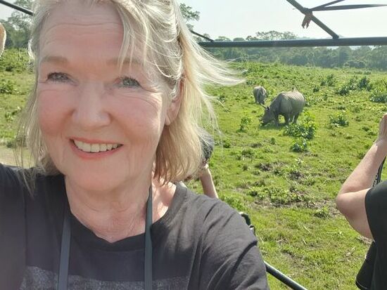 ... und dann kamen sie tatsächlich: Mutter und Kind! Panzernashörner! Der Grund, warum Ines diese Reise machen wollte.