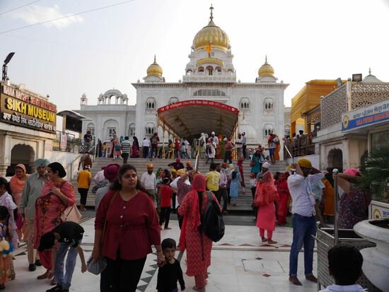 Am frühen Abend lassen wir uns vom Tuktuk zum Gurudwara Bangla Sahib bringen. Weil in Indien gerade Feiertage sind, kommen viele Sikh zum Gebet .