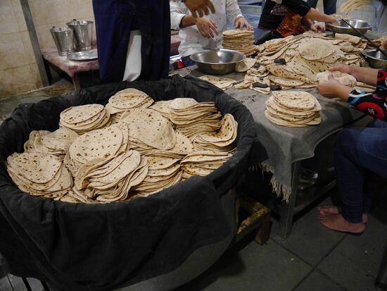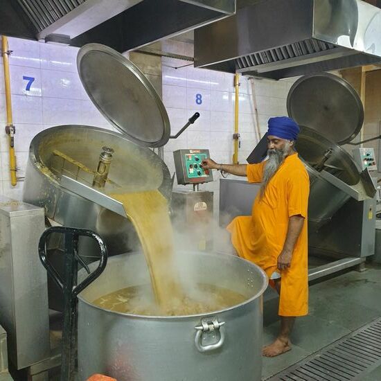 Wenn wir ganz ehrlich sein sollen, sind wir aber wegen der Großküche in den Tempel gekommen. Hier werden in einer riesigen Halle bis zu 15000 Menschen täglich verköstigt. Und das alles aus Spenden!