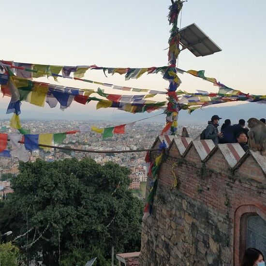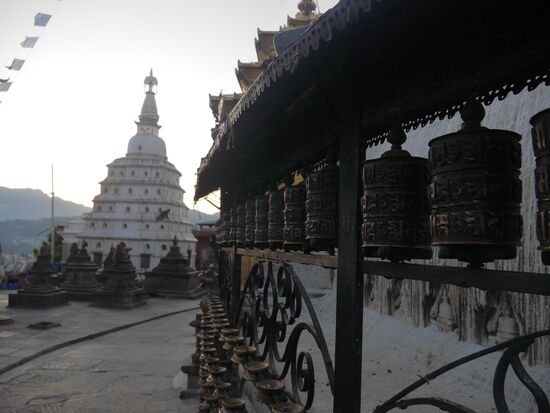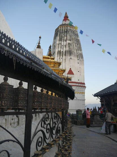 Die Abendstimmung ist wunderschön hier oben und in die Freude über die flatternden Gebetsfahnen, den blauen Himmel und die Sicht auf Kathmandu mischt sich ein wenig Wehmut. Nur noch ein paar Tage ...