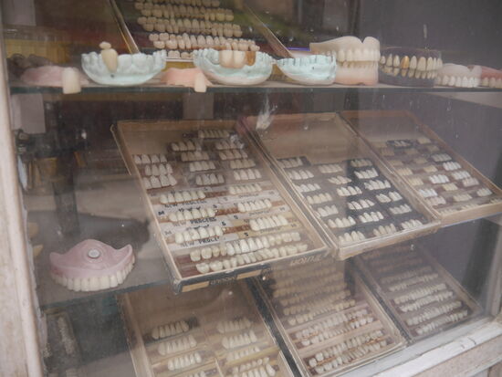 Leider ist vom Schrein wirklich nicht mehr viel zu sehen, aber im näheren Umfeld in den Gassen und Straßen wimmelt es nur so von Zahnärzten und Dentalkliniken. Sie machen gleichermassen durch eigenwillige Schaufenstergestaltungen auf sich aufmerksam. So findet man Zahnfarbprobenfächer, Zähne aus Kunststoff, aber auch echte menschliche Zähne und auch ganz Unterkiefer. In einer Auslage sind den Zähnen auch noch Augen und Ohren zugesellt. Wir haben Spaß an diesen Beobachtungen aber seht selbst:
