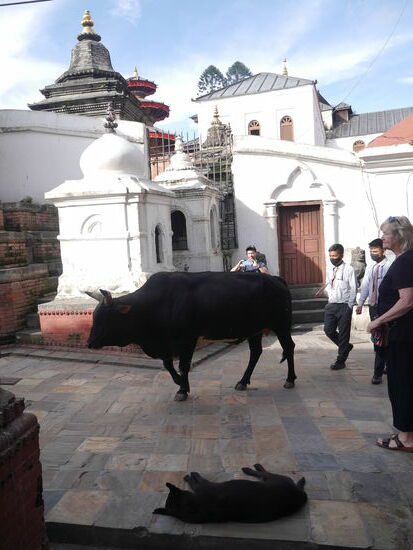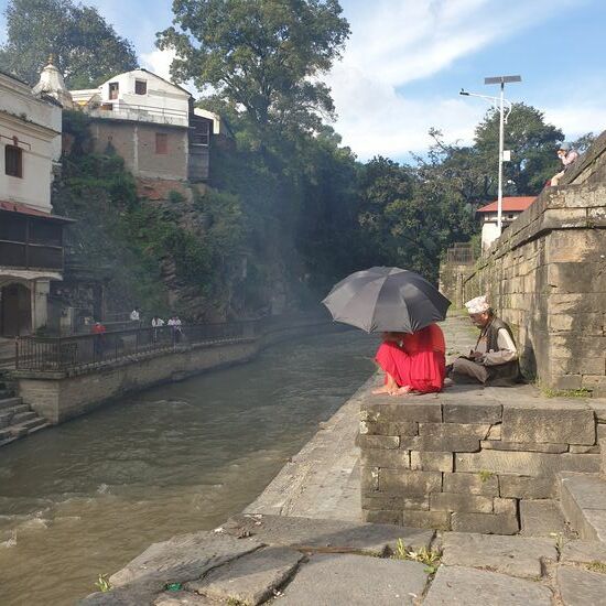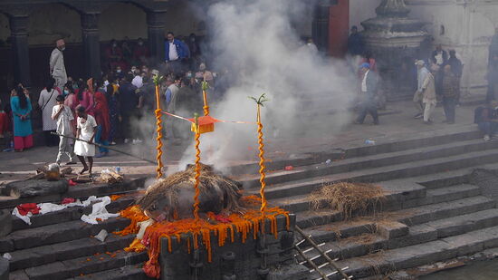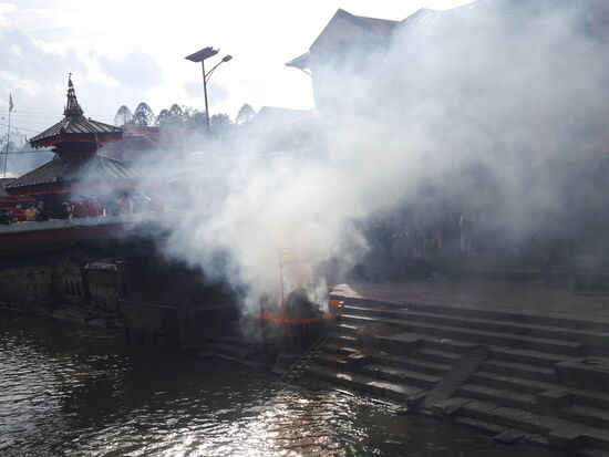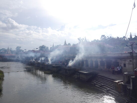 Das weitläufige Areal des hinduistischen Pashupatinath Tempels liegt am Bagmati-Fluss. Hier finden an 2 Ghats die Verbrennungen der Toten statt. Das Surya Ghat ist für arme Leute. Das oberhalb gelegene Arya Ghat ist für die, die sich eine solche Verbrennung leisten können.