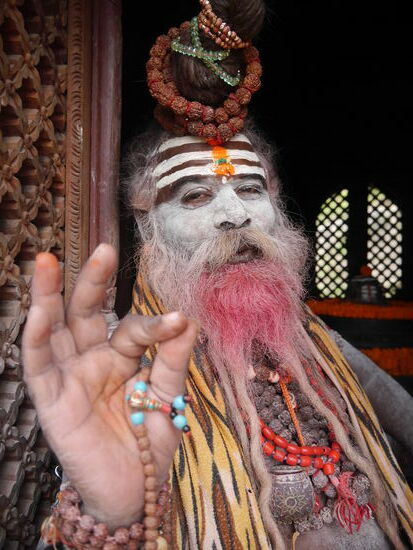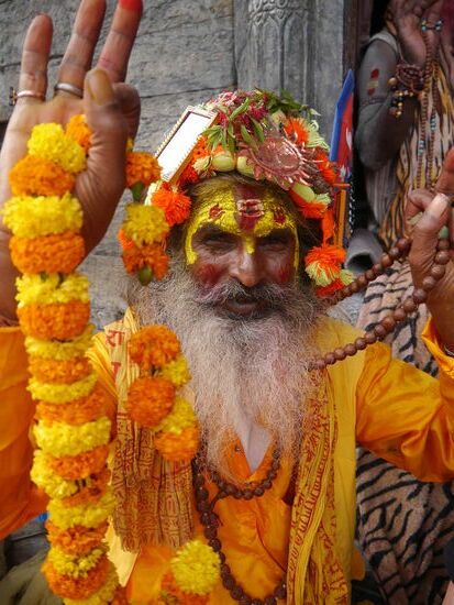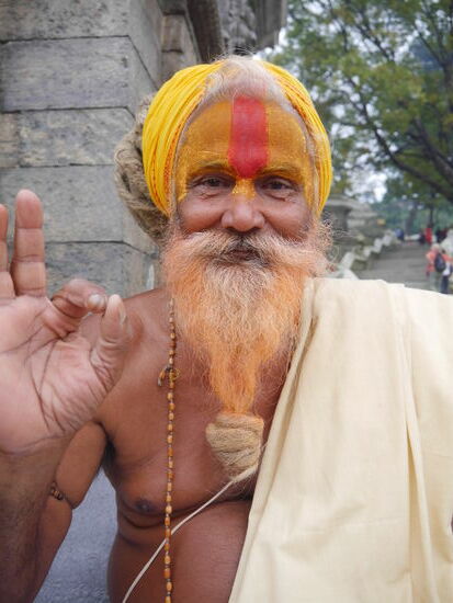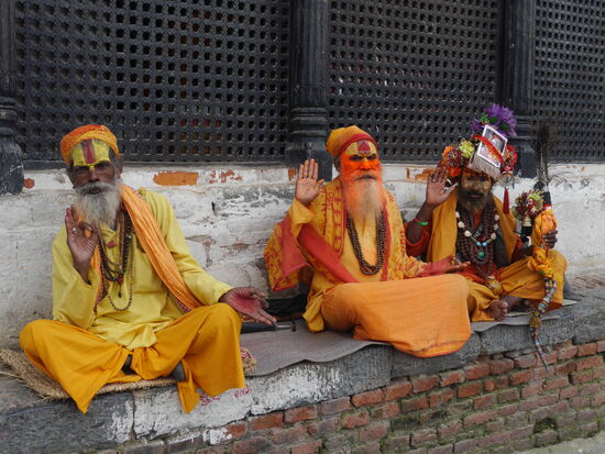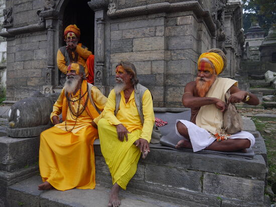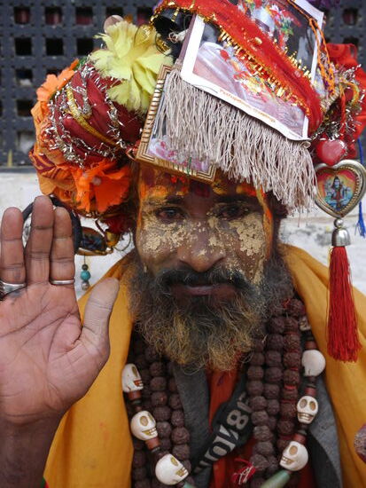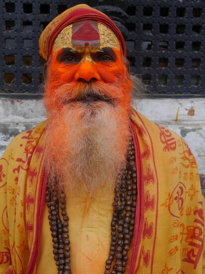 Hund und Affen bevölkern das Tempelgelände, aber unsere Aufmerksamkeit wurde vielmehr von den Sadhus beansprucht. Die heiligen Männer, die vorwiegend gelb tragen, und sich nie die Bärte schneiden, leben inzwischen ganz gut von den Spenden der Touristen, die sie fotografieren möchten. Wenn man erst mal bezahlt hat, zeigen sie sich verschmitzt bis witzig und sind überhaupt nicht kamerascheu Die "Gespräche" mit ihnen haben uns wirklich viel Spaß gemacht