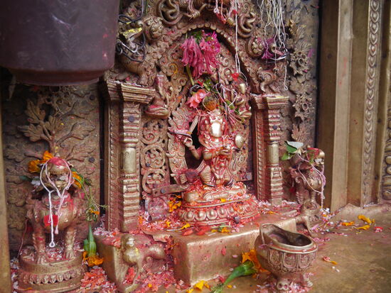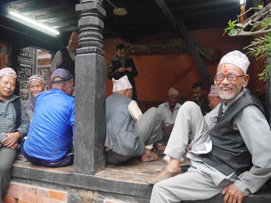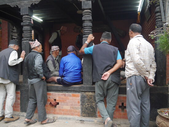 Irgendwo in den Gassen von Bhaktapur haben wir wieder einmal eine Oase entdeckt. Ein Tempel, der uns sehr gefallen hat. Nicht nur wegen seiner Pracht, sondern besonders, weil jeder trockene Platz von kartenspielenden Männern besetzt war.