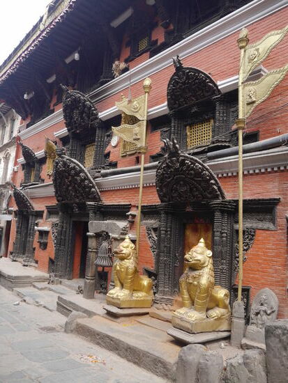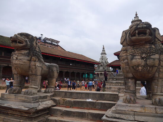 Die meisten Bauwerke sind sehr imposant, aber zugleich filigran, weil handgeschnitzte, meist schwarze Holzdekorationen, fast viele Fassaden überziehen. Viele Gebäude sind im Erdbeben 2015 stark beschädigt worden, immer noch sieht man überall Bauplanen, Ruinen und Mauerstützen. Dem Zauber dieser alten Stadt tut es keinen Abbruch.