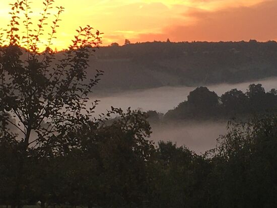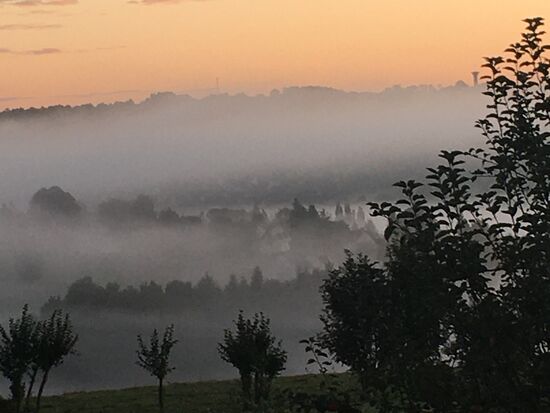 Am nächsten Morgen braucht die Oktobersonne doch schon Zeit um die Bodennebelfelder aufzulösen.