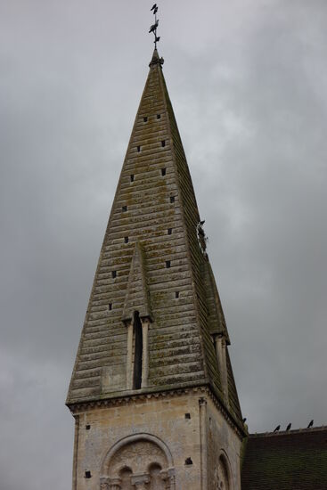 Die Kirche Saint-Martin beitzte eine quadratischen Apsis. Der Glockenturm befindet sich zwischen Chor und Kirchenschiff und wird von einer von vier Fenstern durchbrochenen Turmspitze überragt. Mit Ausnahme der Kathedrale von Sées gibt es im Departement Orne keine Steinspitze vor dem 15. Jahrhundert.