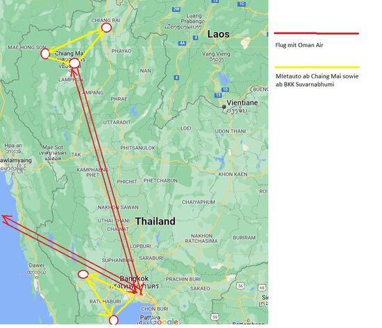 14.10. 22.15 MUC -- BKK 15.10. 18.00 Uhr (Oman Air), dann weiter mit Vietjetair 20.40 Uhr -- Chiang Mai 21.55 Uhr...der letzte Flug des Tages...sollte zeitlich reichen; dann MIetwagen in Empfang nehmen und ins Hotel.