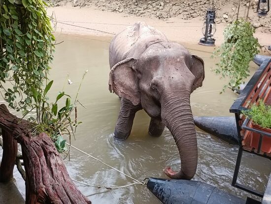 Erst später haben wir erfahren, dass dies ein Elefant aus dem nahegelegenen Mon-Village ist, der den restlichen Teil des Tages dort allein an einer Kette steht. Damit taten wir uns dann doch sehr schwer, vor allem Raphael.