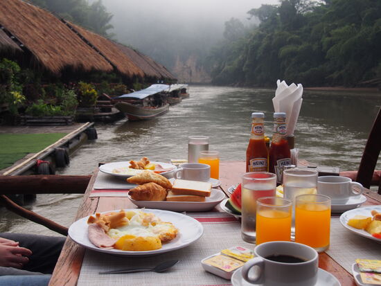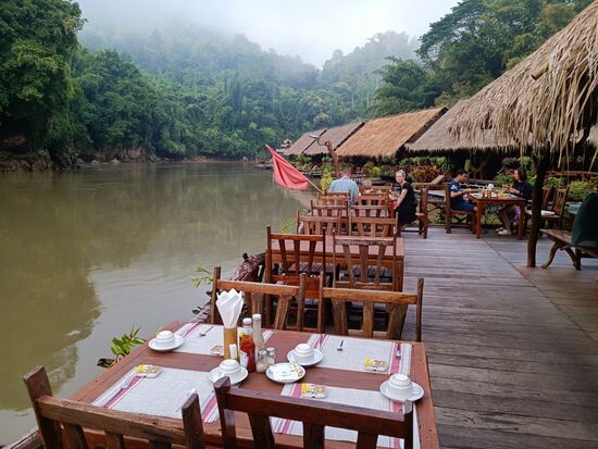 Dann lecker in tollem Ambiente gefrühstückt, der Morgennebel zog erst langsam auf.