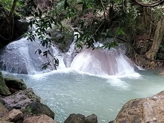 Markenzeichen des Parks ist ein 7-stufiger Wasserfall, den man erlaufen/ersteigen kann, mit herrlichen Badestops zwischendurch. Neuerdings werden dort Lifejackets ausgegeben…albern, weil man auf jedem Level im Wasser stehen konnte. Wir haben die weggelassen…am Level 5 wurde ich dann als Bader vom Wachmann rausgepfiffen. Ich bekam Mecker von der Familie `(ich hatte gegen die Lifejackets entschieden). Was nun? Also Familie wartete und ich machte mich auf den Weg zu Level 2, um diese Sch-Teile zu holen. Als ich zurückkam war der Wachmann seiner Aufgabe anscheinend überdrüssig, ergab sich seiner Müdigkeit und Etliche badeten ohne Lifejacket…ebenso bei Level 6 und 7….