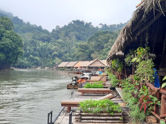 Auf nach Kananchaburi – Death Railway soll es heute sein, aber vorher müssen wir noch Kröten tanken. Also 9.00 Uhr bis dem Longboat zum Pier und eine Stunde zum Bahnhof bei gewohnt flotter Fahrt in thailändischen Stil. Wir haben uns entschieden von Kananchaburi über die River Kwai Bridge bis Thamkra Sae zu fahren, also unmittelbar bis hinter das Viadukt, um dann auch noch zu Fuß darüber laufen.