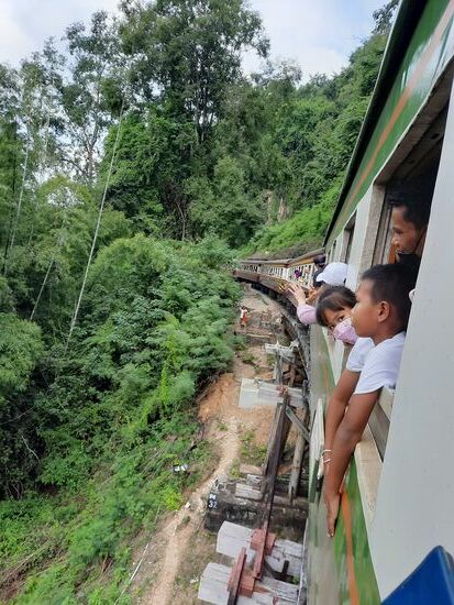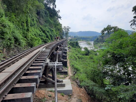 Wir sind auf dem Rückweg direkt an der River Kwai Bridge ausgestiegen.