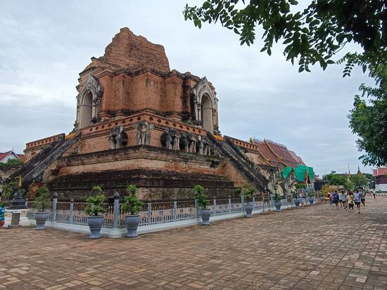 Die Wat Chedi Luang muss vor etlichen Jahrhunderten ein riesiges Bauwerk gewesen sein. Die Dimensionen werden auf dem Foto nur bedingt deutlich.