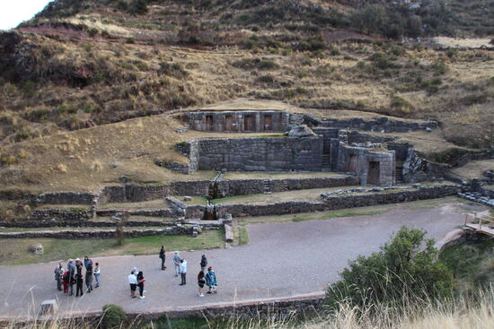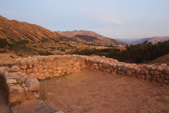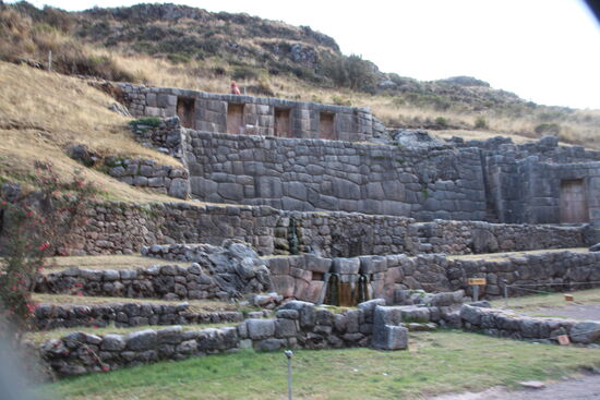 Der nächste Stopp folgte bei Tambomachay, einem Wasserheiligtum. Dazu müssen wir ein Stück weit den Berg hoch. Wir sind hier auf 3.800 Metern Höhe und die Sonne geht langsam unter. Jetzt wäre eine Jacke doch angenehm. Im kurzarmige. Hemd wird es in der Tat ganz schön frisch.