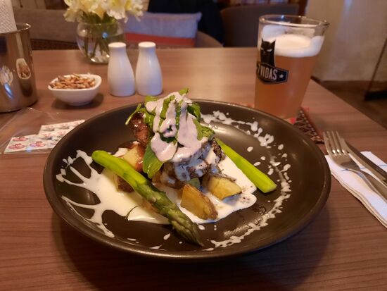 Wieder im Hotel habe ich meine Jacke angezogen und bin zum Abendessen ins Chull’s Craft Beer, das auch eine sehr gute Küche hat. Ich esse erst ein gutes Rindersteak mit Beilagen, dann ein Flan. Das Essen war lecker und das Ambiente auch recht schön.