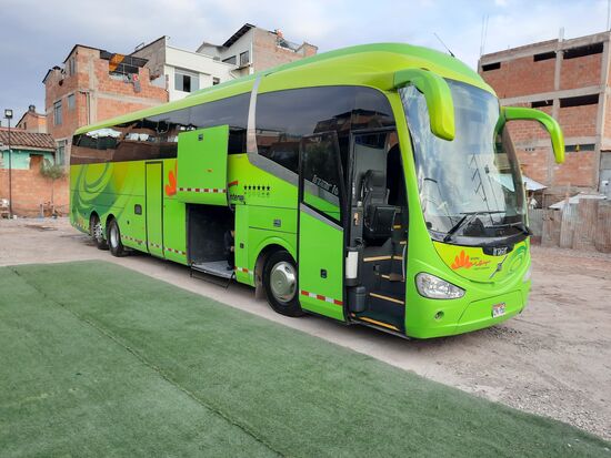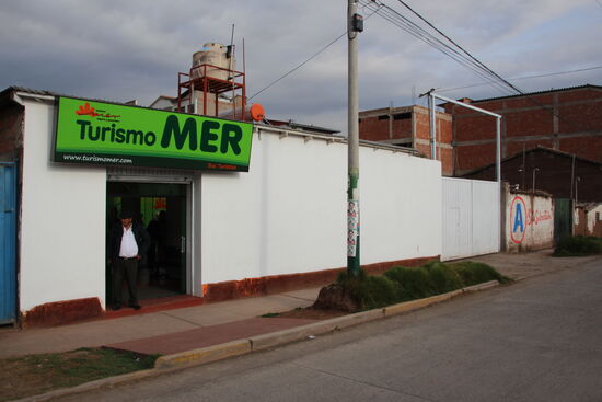 Das Taxi, das mich zum Busbahnhof von bringt, ist superpünktlich da. Ich hatte ja zwischendrin einmal gedacht ich könnte mir die 10 USD Abholservice sparen und hinlaufen. Bei Google Maps sah es zumindest so aus. Gott sei Dank habe ich das nicht gemacht. Wir sind etwa 15 Minuten gefahren, bis ich am Stadtrand von Cusco vor eine Tor abgesetzt worden bin. TurismoMer hat hier seinen privaten Bahnhof. Ich bin irritiert, weil ich ja bei der Konkurrenz gebucht hatte, aber es scheint alles seine Richtigkeit zu haben. Nur entgegen der Zusage, dass ich mir keine Sorgen machen müsse wegen der Beine, war es eine Katastrophe. Ich bin sieben Stunden mit den Beinen im Gang verdreht dagesessen. Zum Glück hatten wir bei 10 Stunden insgesamt drei Stunde. Unterbrechungen.