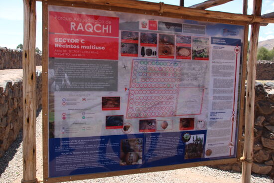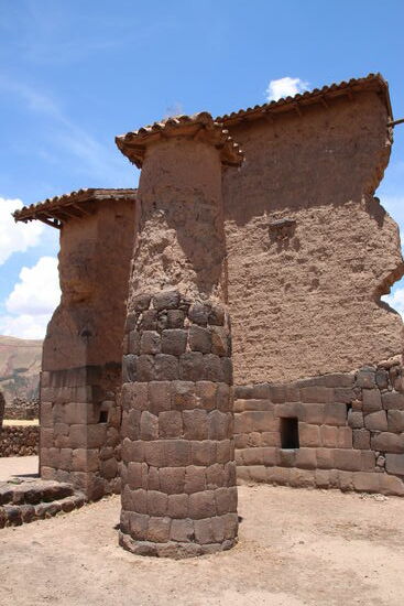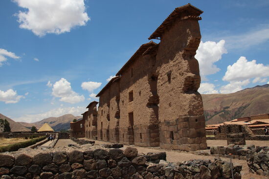 Auch die Landschaft, durch die wir gekommen sind, ist großartig. Der nächste Stopp folgte an dem archäologischen Komplex Raqchi aus der Präinkazeit, in der viele kreisrunde Bauten aneinandergebaut waren. Das war wohl so etwas wie ein zentrales Lebensmittellager. Direkt nebenan steht eine außergewöhnliche Tempelruine mit bis zu 12 Meter hohen Säulen. Auch dieser Platz ist äußerst sehenswert.