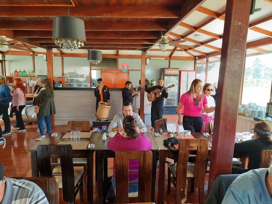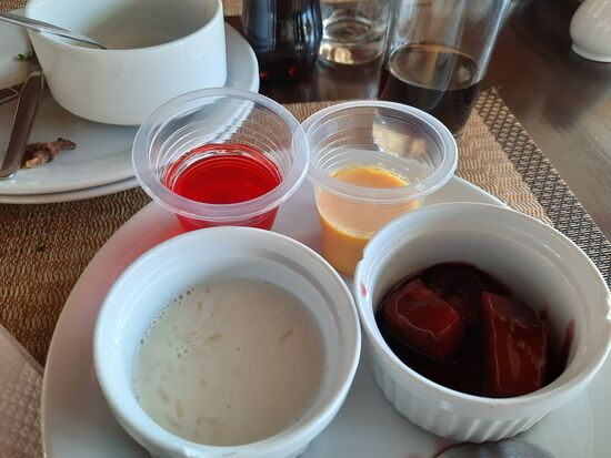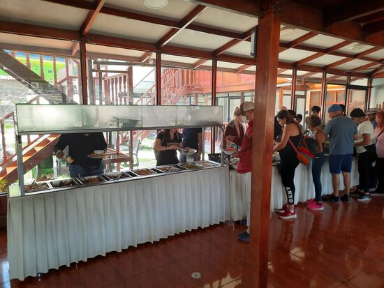 Nach weiteren etwa 1,5 Stunden sind wir bei unserer Mittagsstation angekommen. Es gibt Buffet mit Folkloremusik. Das Essen ist nichts Besonderes aber das eine oder andere ist doch ganz lecker. Vor allem das Dessertbuffet gefällt mir. Da fange ich auch gar nicht erst mit den kleinen Tellerchen an.