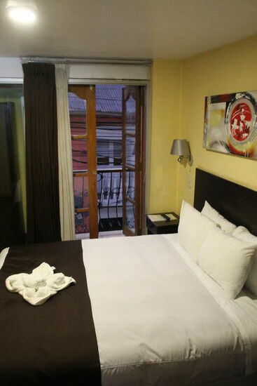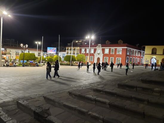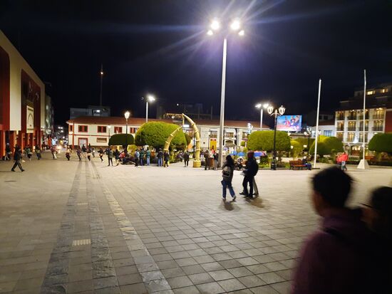 Das Zimmer ist eher einfach. Das Bett etwas weich, aber bequem. Es geht nach vorne auf die Straße raus, aber das ist zum Glück eine Sackgasse, die am Plaza Mayor endet, was gleichzeitig bedeutet, dass ich eine recht gute Lage erwischt habe. Hier fängt die Fußgängerzone von Puno an.