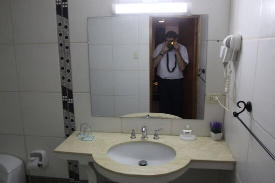 Mein Hotel wirkt auf mich so ein bisschen wie aus der Zeit gefallen, wenn man den Lobbybereich und den Treppenaufgang sieht. Etwas schlucken muss ich. Als mir erklärt wird, dass Frühstückszeit von 06:00 – 08:00 ist. Kann ja nicht sein. Ich schlage vor, dass ich auf das Frühstück verzichte und dafür später dann einfach nur einen Kaffee bekommen. Soweit ich das verstehe, sind sie damit einverstanden.