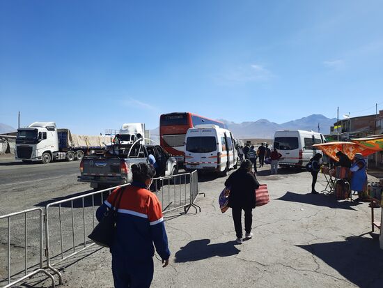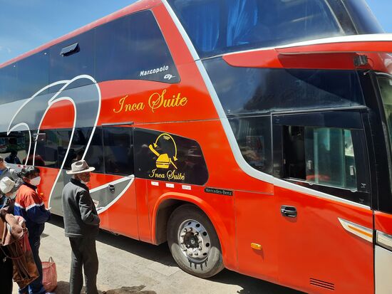 Der Busbahnhof befindet sich wieder am Rand der Stadt. Der Bus ist erfreulicherweise relativ bequem. Für Leute bis 1,80 sollten die Sitze sogar richtig bequem sein. Immerhin habe ich reichlich Platz für meine Knie. Zuerst ging es kaum merklich nach oben. Ich habe es nur daran gemerkt, dass ich wieder etwas schwerer geatmet habe. Daraufhin habe ich die Höhenmesser App aktiviert und siehe da, wir befinden uns auf einem Hochplateau auf knapp 4.400 Metern Höhe. Auf der Höhe bleibe. Wir auch so 2-3 Stunden bevor des dann auf 2.300 Meter runter geht. Unterwegs halten wir noch irgendwo im Nirgendwo, müssen alle aussteigen und unser Handgepäck mitnehmen, das dann in einer Steinbaracke durchleuchtet wird. Dann geht es weiter.