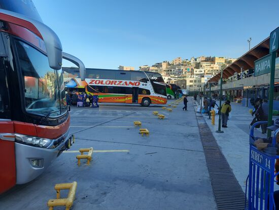 Rund 6,5 Stunden später sind wir in Arequipa an einem Riesenbahnhof angekommen.