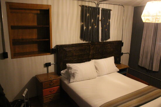 Ich folge den Schildern „Rezeption“ Durch das Gelände, ein Gebäude und stehe auf einer kleinen Gasse. Hier ist der Eingang zu. wohl eigentlichen Komplex mit dem Pool und auch der Rezeption. Ich zahle das Zimmer und muss noch eine Erklärung unterschreiben, dass ich zur Kenntnis genommen habe, dass in zwei Tagen Halloween gefeiert wird. Nun ja, da habe ich ja auch schon eine Mail bekommen. „Und was bedeutet das?“. „Dann findet hier eine Party statt“. „Aha, und Wo?“ „Gleich hier in der Gartenanlage“. „Und wo ist mein Zimmer?“ „Gleich hier“ (an der Gartenanlage). „Das geht nicht. Die Party soll offiziell bis 05:00 gehen. Da ist am Schlaf ja gar nicht zu denken. Die Damen empfehlen mir Oropax. Ganz bestimmt nicht. Also gut, sie suchen etwas und finden dann ein anderes Zimmer für mich. Eine begleitet mich wieder auf das andere Gelände rüber. Stolz zeigt sie mir dort die Gemeinschaftsküche, die „Bücherei“ und das „Cinema“. „Cinema?“ „Ja, ein Raum mit Fernseher auf dem Netflix läuft. Naiv wie ich bin „Gibt es denn, keinen Fernseher auf dem Zimmer?“ „Doch schon, aber nicht in den Dormitorys.