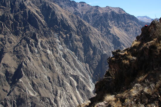 Dann ist es Zeit und wir steuern den eigentlichen Beobachtungspunkt an. Wir haben etwa 1,5 Stunden Zeit. Der Bus lässt uns an einer relativ hohen Stelle raus. Von hier aus kann man zu Fuß verschiedene Aussichtspunkte ansteuern. Am tiefsten liegt der Platz, den man auf den Werbeprospekten üblicherweise sieht. Ich bleibe erst einmal hier oben. Nach 20 Minuten bin ich ziemlich ernüchtert. Kein einziger Kondor zeigt sich. Was mache ich jetzt mit dem Rest der Zeit? Doch runter gehe, in dem Wissen. Den Weg danach wieder rauf zu müssen? Irgendwie muss ich die Zeit ja rumbringen.