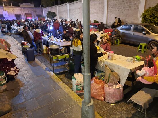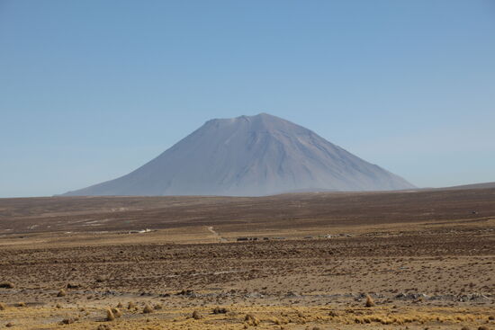Eigentlich erwarten wir alle, dass wir jetzt direkt zurückfahren. Wir halten aber doch noch einmal an einem Aussichtspunkt auf die drei Vulkane von Arequipa.
