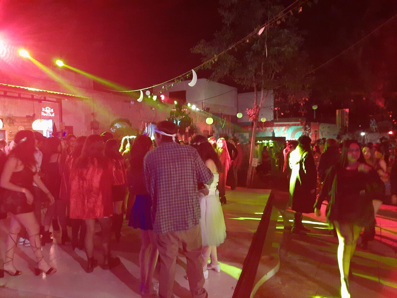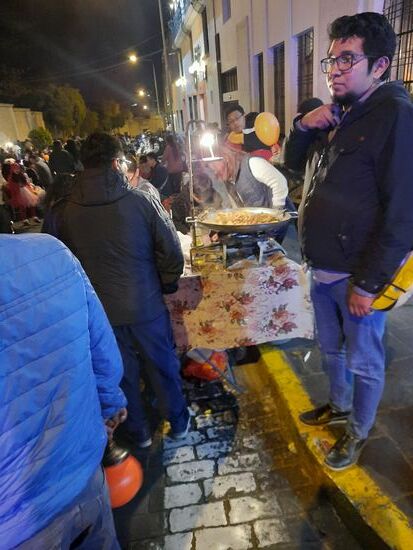 Auf den Straßen wimmelt es von Menschen. Ich laufe die Jerusalem hoch und will wie bei der Ankunft durch den Hintereingang ins Selina, weil das kürzer ist. Das funktioniert aber so nicht. An dem Törchen steht eine Gruppe junger PeruanerInnen und innen eine Hotelangestellte mit Namensliste, die niemanden rein lässt. Also gut, dann gehe ich außen herum und durch die Minigasse. Hier kann ich ganz normal durch den Eingang an der Lobby vorbei, ohne dass jemand etwas von mir will. An der Bar finde ich die Vier und. Es wird ein lustiger Abend. Wir trinken Gin Tonic, der eher etwas dünn gemischt ist. Auf Empfehlung eines Hotelangestellten holen die vier eine Flasche Gin, Eis und Tonic, damit wir später, wenn es voll wird, nicht so lange anstehen müssen. Noch können wir uns das nicht so richtig vorstellen. Der Pool ist aber schon einmal mit Brettern abgedeckt und soll die Tanzfläche werden und daneben ist Mords das Mischpult aufgebaut. Am 22:30 beginnt sich der Garten zu füllen und als ich mich gegen Mitternacht verabschiede, befinden wir uns in einer gut gefüllte. Open Air Disco mit kostümierten, leicht bekleideten peruanischen Jungen und Mädchen, für die sich selbst die Vier zu alt vorkommen. Ganz verrückt wird es, als ich kaum aus der Anlage rauskomme, weil vor dem Eingang eine Meute Teenies unbedingt rein will und vom Türsteher kaum zurückgehalten werden kann.