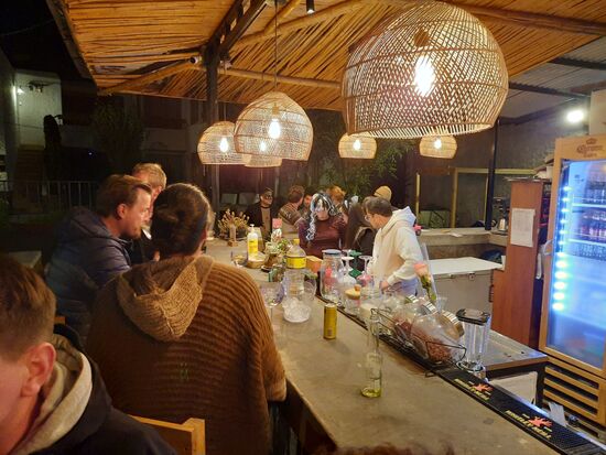 Irgendwann stellt einer der beiden in der hinteren Reihe fest, dass er Probleme mit der Höhe bekommt, Während die Beiden in der Reihe davor schlafen. Ich halte ihm und seinem Nachbarn die Coca Bonbons hin. So komme. Wir langsam in Kontakt. Bei den viere. Handelt es sich um ehemalige Kommilitonen, die gemeinsam ein Ingenieursstudium abgeschlossen und seit damals befreundet sind. Heute sind sie in unterschiedlichen Bereichen wie Bosch und Automobilindustrie tätig. Sarah und Robert in der vorderen Reihe sind inzwischen ein Paar. Mark und Baris ergänzen das Quartett. Wie wich herausstellt wohnen sie in Selinas, wo sie sich allerdings ein Zimmer zu viert teilen. Sie sind 32, womit sie etwas über dem von mir geschätzten Alter der Gäste dort liegen, stellen aber auch fest, dass sie wohl zur oberen Altersgruppe gehören. Ich finde die Vier ausgesprochen sympathisch, so dass wir den Tag über in der Gesellschaft bleiben.