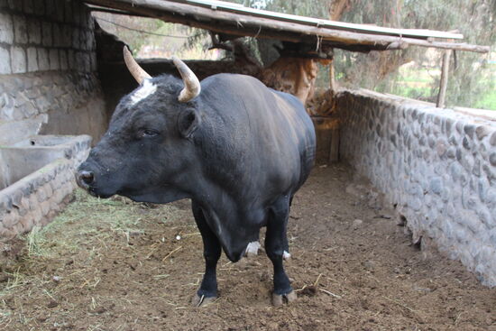 Neben der Mühle gibt es auch noch einen Mini-Zoo. Der wäre nicht der Rede wert, wenn es da nicht einen Stier gäbe, den unser Guide extra erwähnt. Die Rasse wurde speziell für den Stiefkampf gezüchtet und ist einer der größten Stiere, die es weltweit geben soll. Wenn man ihn so sieht und deutsche Stiere kennt, glaubt man das sofort.